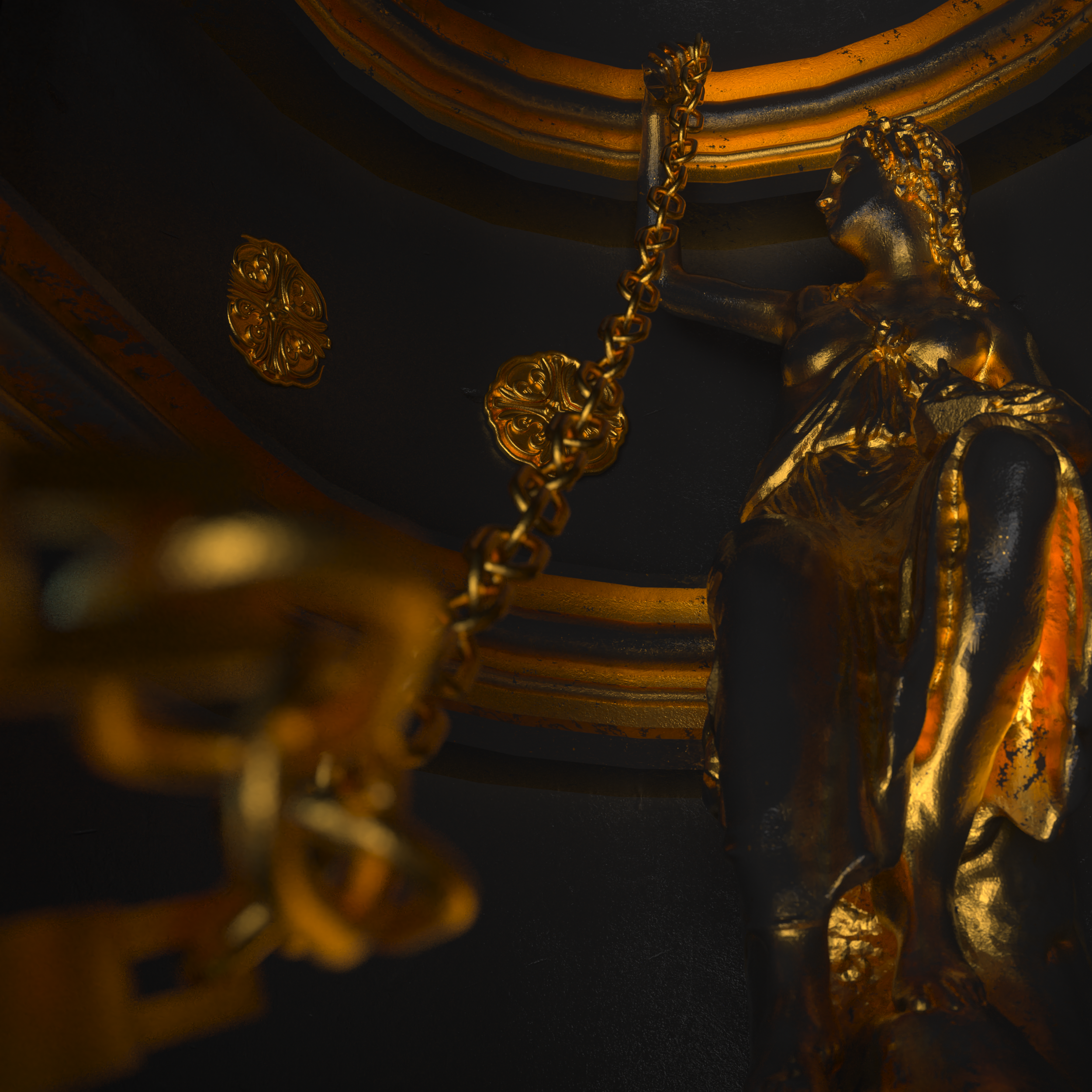 I wanted this to look beautiful and ornate, all to be tainted and stained by blood, while it splatters the wall behind and pours from the head. You can paint a beautiful picture of yourself, but that doesn't mean you're not human like the rest of us. This acts as a reminder of that.